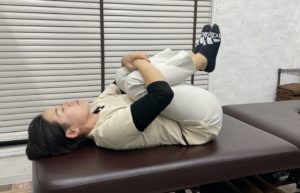 仰向けになり両膝を立てます。