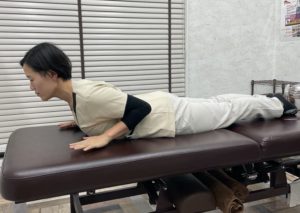 吐く息でゆっくりうつ伏せに戻りましょう。