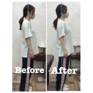 本日は当院の猫背矯正の施術を一回受けた結果のBefoer・Afterの写真をご紹介します。