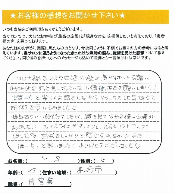 ずっと気になっていた小顔矯正をお願いしました!